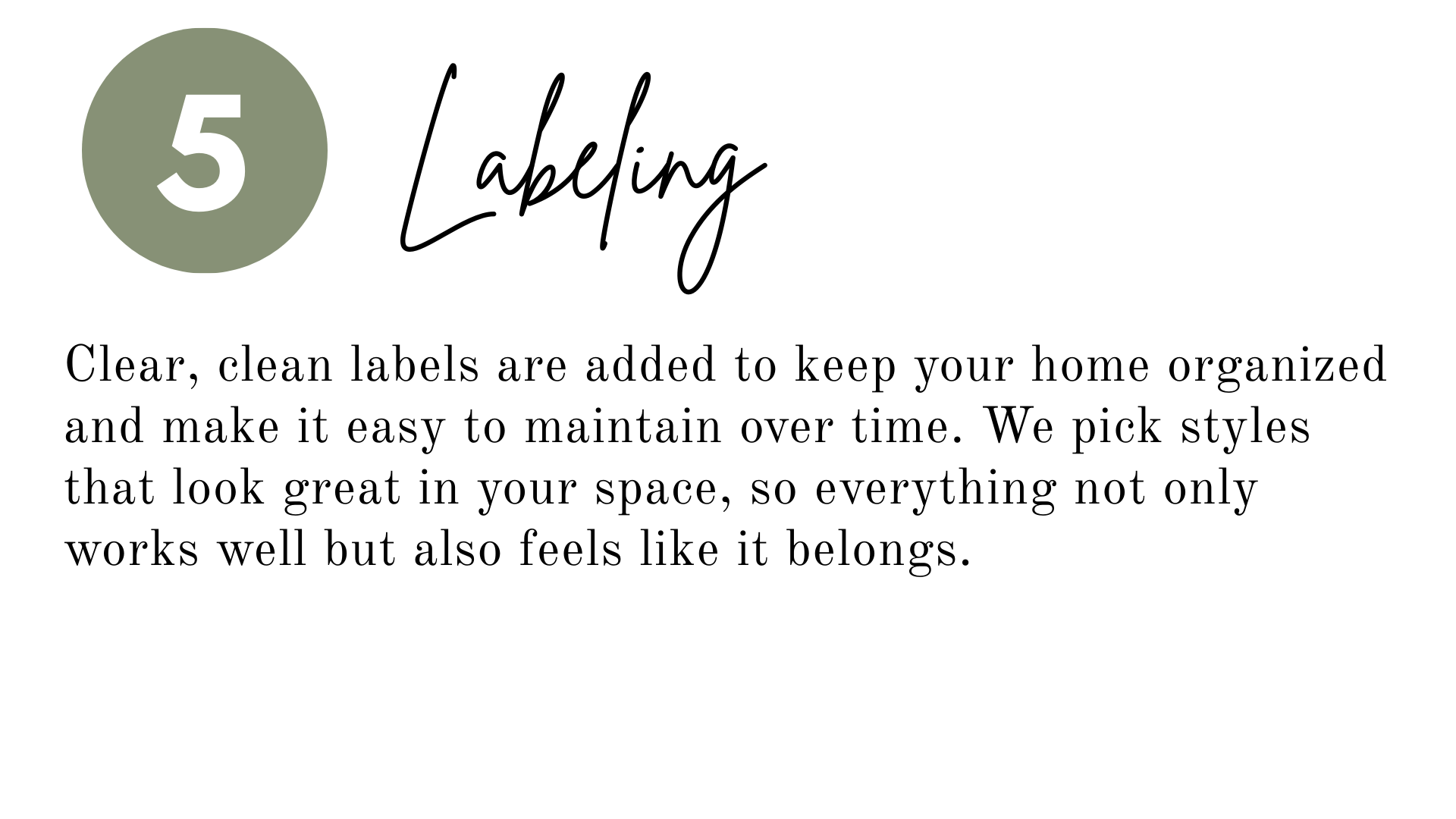 From closets and pantries to playrooms and garages, our in-home organizing services create thoughtful systems for your space. Our team is dedicated to helping you find peace within your home by decluttering, organizing and labeling.